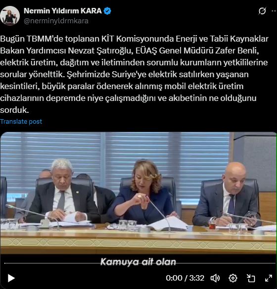 Milletvekili Kara, ayrıca Suriye’ye elektrik satışı sırasında Hatay’da yaşanan kesintilere dikkat çekti. Deprem döneminde büyük maliyetlerle alınan mobil elektrik üretim cihazlarının neden çalıştırılamadığını ve bu cihazların şu an nerede bulunduğunu da yetkililere sorarak açıklık getirilmesini istedi